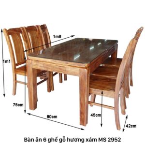 Bàn ăn 6 ghế gỗ hương xám MS 2952