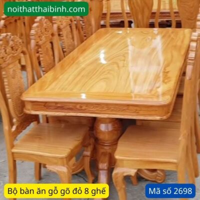 Bộ bàn ăn gỗ gõ đỏ 8 ghế MS 2698