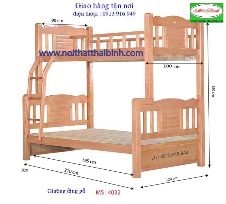 Giường tầng gỗ tự nhiên MS 4032 Giá 1m2 = 15.500.000